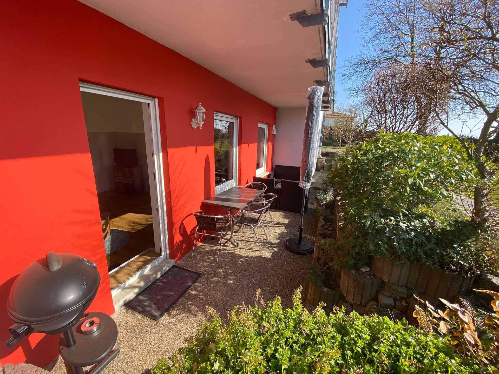 Die 2022 teilrenovierte Familienwohnung besteht aus einem großen Wohn-Esszimmer mit ausziehbarem Sofa, einer Küche mit Spülmaschine, Senseo Kaffemaschine und Allem was man braucht. Ebenso verfügt die Wohnung über ein modernes Badezimmer mit großer Dusche. Ein großes Schlafzimmer mit 180 cm Doppelbett und ein Kinderzimmer mit 140 cm französischem Bett bieten Platz für bis zu 6 Pesonen. Eine Terrasse mit Gartenzugang gehört genauso dazu, wie Liegestühle und ein Essplatz im Freien.